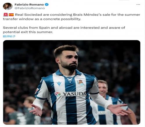 体育资讯5月13日报道宣称 据知名记者罗马诺报道,皇家社会正在考虑今夏出售布莱斯-门德斯。