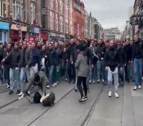 在赛前,一段视频在社交媒体上流出,显示大量沙尔克球迷在都柏林市中心游行。视频中,他们沿着Abbey Street Lower高喊助威口号,引来路人围观。
