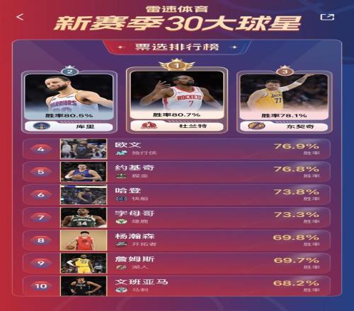 雷速体育10月14日讯 雷速NBA新赛季30大球星活动正在如火如荼地进行中。