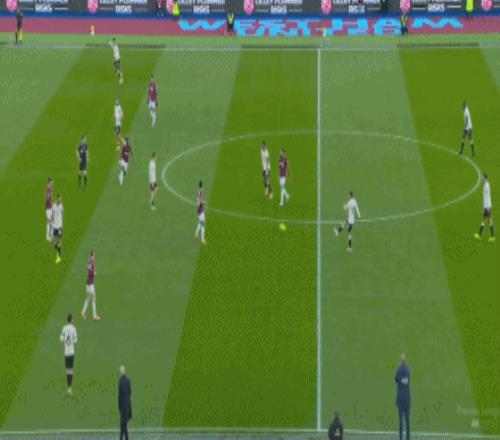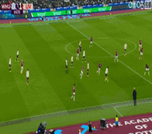第90+2分钟,西汉姆联后卫冒顶,加克波门前半转身破门完成传射,利物浦2-0领先