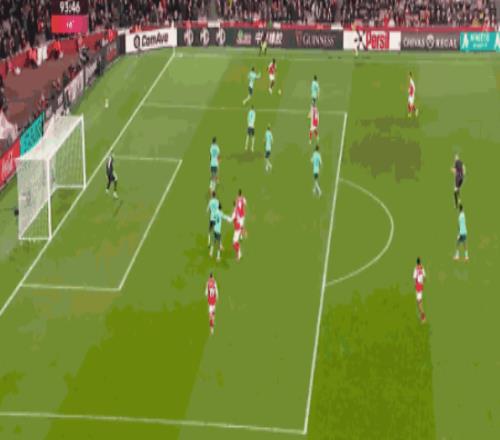 第83分钟阿森纳右路发动进攻,连续传导后将球交给了左路的特罗萨德,后者低射打近角,皮球擦着立柱出了底线,错失为球队终结胜负悬念的绝佳机会,浪费机会的一方会受到惩罚的足球真理,随后惩罚了阿森纳,伤停补时第91分钟,阿洛科达尔禁区内甩头攻门,帮助狼队1-1扳平比分,但3分钟之后,萨卡成为了枪手的英雄,他的传中造成了耶森·莫斯克拉的乌龙,阿森纳艰难以2-1绝杀了狼队。