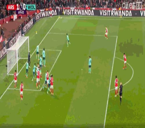 阿森纳上轮客场不敌阿斯顿维拉,被曼城再次缩小分差,今天回到主场对阵本赛季唯一没有赢过球,排名垫底的副班长狼队,这是一场名副其实的首尾大战,大多数球迷都认为阿森纳肯定会轻松拿下狼队,然而阿森纳今天差点又丢分了。开场后阿森纳就完全压制狼队,第6分钟,阿森纳右路压上,萨卡禁区边上拿球持续内切后过顶兜传门前,延贝尔小禁区前沿超近距离抢点头槌攻门顶高了。