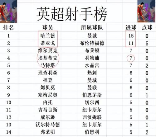 射手榜方面,哈兰德15球领跑,蒂亚戈11球紧随其后,埃基蒂克今天梅开二度,追上维尔贝克,马特塔,7球并列第3。威尔逊,内托,吉马良斯等人5球刚好挤入前十。