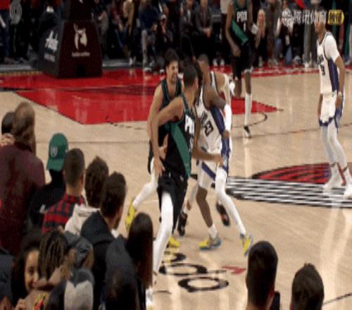 说威少抬起右臂接触了阿夫迪亚的手臂